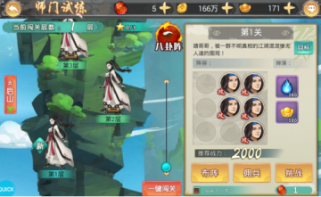 师门试炼位于游戏【挑战】副本内,是真气资源主要产出的地方。当领导力等级达到20级时开启,获取真气资源激活经脉系统。挑战或扫荡师门试炼需消耗师门试炼石,试炼石可通过每日回复与消耗元宝购买获得,购买次数随VIP等级提升而增加。师门试炼奖励随挑战层数增长而增加,首次挑战通过还可额外领取金币、装备,元宝 等丰厚奖励。师门试炼挑战排名,将会在排行榜内试炼榜中显示。