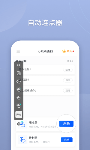 万能点击器app,自动点击工具,界面简洁,操作简单,轻松上手,快速制作各种脚本,轻松时间自动点击,方便又快捷。下载手机万能点击器app,轻松实现多个平台自动点击操作。