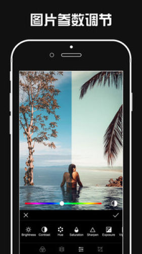 4.高级图片编辑工具 使用高级参数调节工具,如对比度,饱和度,褪色,色调,高光,温度,阴影,晕影,锐化,曝光,亮度和颗粒。