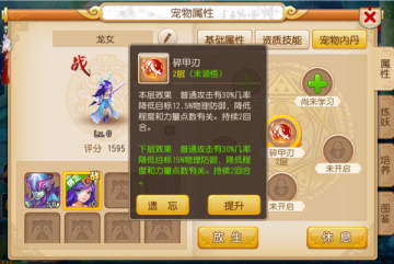 每只宠物都可以学习宠物内丹,内丹赋予宠物更强大的能力。到达50级的玩家就可以给自己的宠物学习内丹了。
