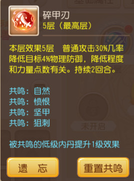 高级内丹遗忘后,其共鸣属性也跟随一起消失。