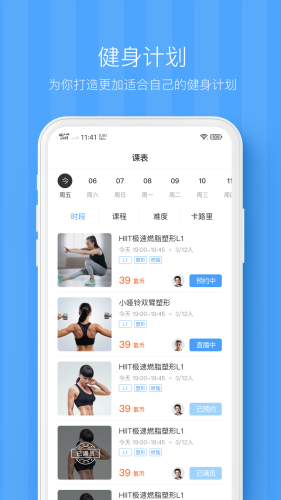 根据你的健身目标和基础,以轻健身为主,拥有专业的课程研发团队,为用户提供更加适合自己的课程。