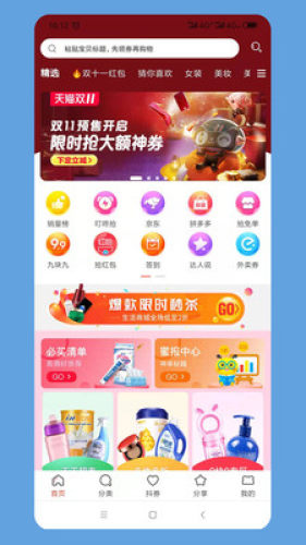 【省时】购物达人热荐栏目,9.9包邮、视频看款、小吃街等热门类目;