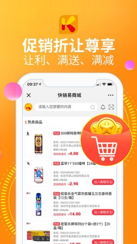 快销易app,是一款为实体店打造的快消品掌上采购平台,在这里可以批发采购商品,价格更优惠,折扣更多,送货上门,速度快有保障,可以给您的店铺提供源源不断的货源。