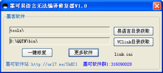 墨可易语言无法编译修复器由墨可工作室制作,当使用易语言制作成品时,发现无法编译,可以使用本工具进行修复,欢迎下载体验。