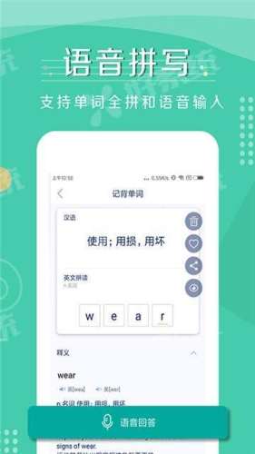 专门针对英语单词学习中的系列产品,是市面上新流行的快捷背单词产品。语音回复响应、高频核心词库,记背单词更科学、更高效,为口语、听力、阅读、作文加分助力!可直接通过语音回复,响应单词内容,语音回复及单词字母空格更能激发增强您的记忆力。