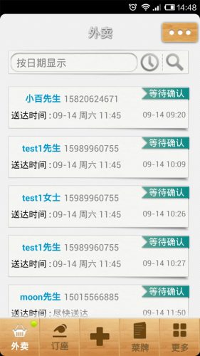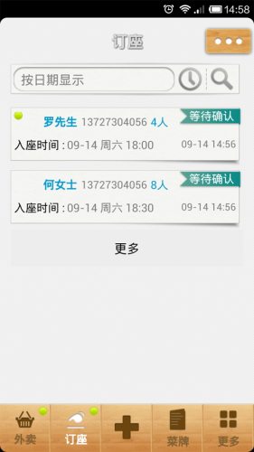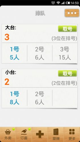 手机排队:智能显示排队请况,可以避免食家空等,并能随时提醒入座