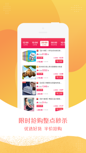 【限时抢购】每日整点抢购商品,数量有限,优惠券限时发放。