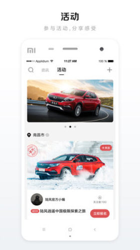 1、社交:资讯为官方发表陆风生活相关的新闻;活动为官方或者经销商发布的线上线下活动,用户可以报名参加;