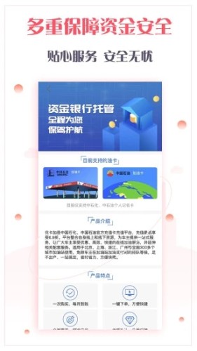 5.安全保障:信息加密,与各大油站合作,资金全面安全保障。