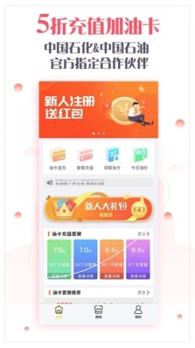 1、【新人活动】新人注册送2888元加油红包2、【官方折扣】中石油、中石化加油卡充值5折起3、【系统升级】系统更智能、更安全