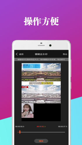 1.快速去除小视频水印、短视频水印,只需要框选水印区域,就可以把视频水印部分去除