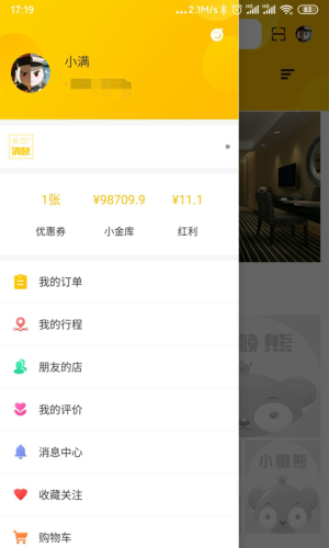 小懒熊app,包揽吃喝住行,是一款生活无忧专属掌上软件。在这里可以享受到全城美食、优惠住宿、网上约车等服务,给你在城市中的生活增添了超多的便捷与实惠。