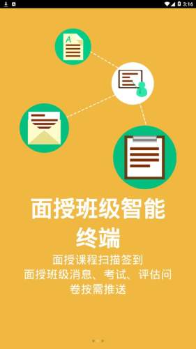面授班级智能终端:面授课程扫描签到,面授班级消息、考试、评估问卷按需推送。