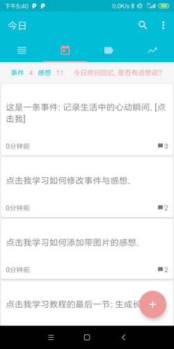2.今日分页:浏览当日事件,发表感想,记录新事件。