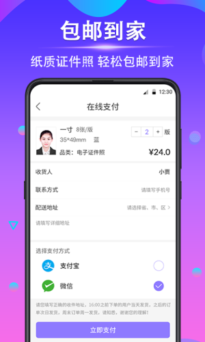 纸质证件照 轻松包邮到家