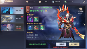 在试炼副本中可找到天宫试炼副本,天宫试炼每天最多可挑战8次,每层最多可挑战1次(挑战失败不计算次数)。天宫试炼副本沿用关卡通关的玩法,需要通过前置关卡才能挑战下一层关卡,挑战成功能获得试炼币和部分商城道具。