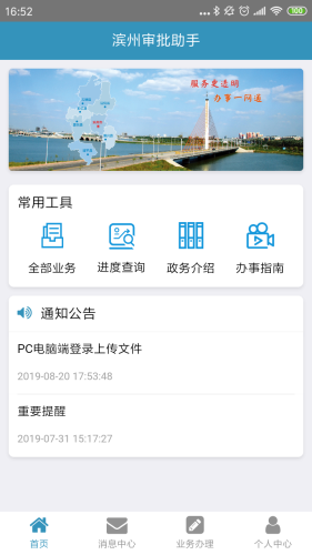 滨州审批助手是一款可上传事项材料的移动APP,办理人无须到政务中心办理。