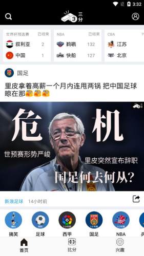 三分体育app,个性化新闻订阅平台。三分体育为用户带来丰富的体育新闻、简单的阅读方式、全面的数据分析以及世界杯、NBA、乒乓球等赛事实时跟踪报道,还有兴趣新闻智能推荐,只推你爱看的体育新闻。