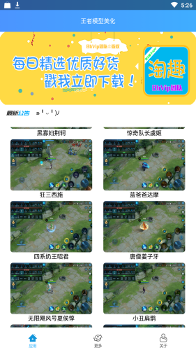 王者模型美化app是一款功能强大的王者荣耀辅助软件,软件拥有丰富的人物模型,用户可以一键替换,可以让玩家畅享不一样的王者荣耀乐趣,喜欢的朋友可以前来下载使用。