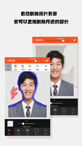 - 使用自动编辑工具将背景更改为可接受的护照标准。