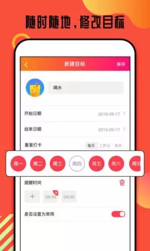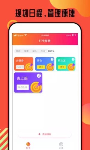 我们也提供了自定义打卡功能,你可根据自己的需求设定具体目标哦,进行打卡操作。