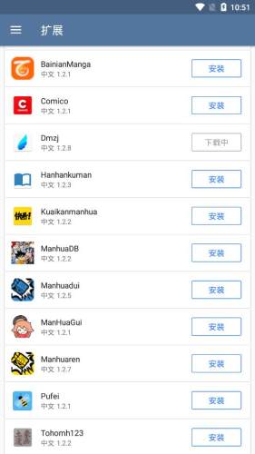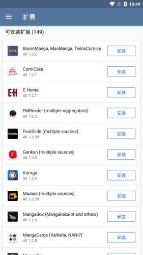 你选择想看的扩展(漫画网站)安装,之后在”发现“菜单里你输入关键字就会在这些网站搜索。