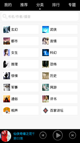 玄幻,奇幻,都市,言情,刑侦,推理,历史,军事,网络热门,官场商战,武侠小说,人物传记等各种分类,8000部以上小说,60万集,应有尽有。