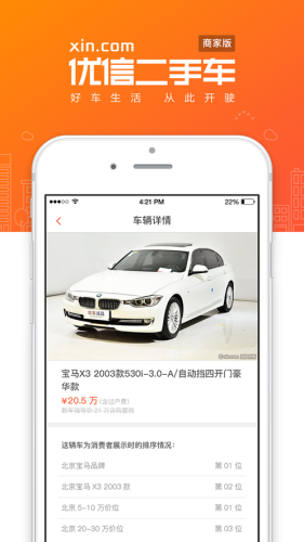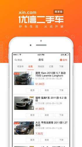 优信二手车商家版,二手车商户在线销售,买家动态跟踪的掌上管家。