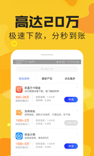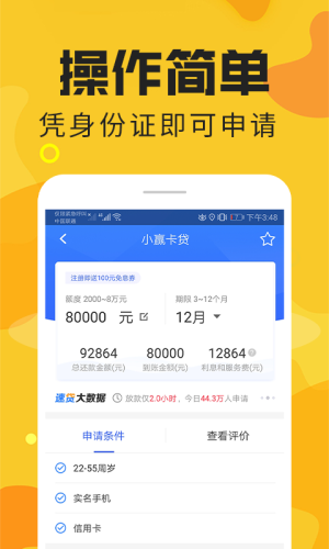 2、速度够快:手机申请3步搞定,5分钟申请,10分钟审核。