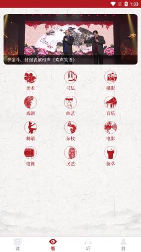山东艺术app,山东文艺掌上资讯平台。通过读听看得形式展示山东多样文化魅力,每日实时推送山东艺术界新闻资讯,宣传山东艺术家形象、展示山东文联艺术家风采,提高人民文化艺术素养。