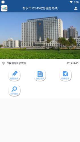 衡水12345网上投诉平台app,为衡水当地提供便捷的投诉、举报、建议、咨询等服务,连接市长热线,帮助用户解决各种政务问题,让当地居民轻松参与衡水地区建设中去,享受优质服务。