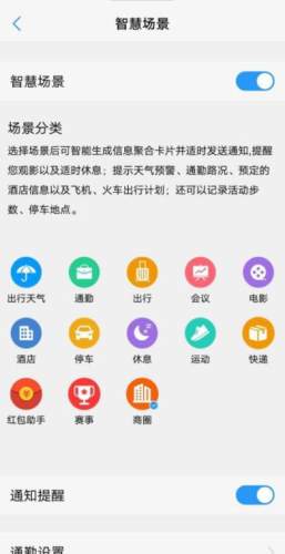 选择场景后可智能生成信息聚合卡片并适时发送通知,提醒您观影以及适时休息;