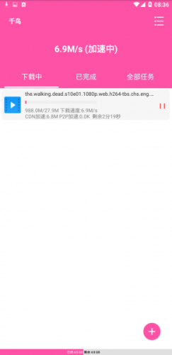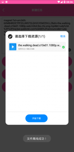 千鸟最近出来的下载软件,楼主测了一下这一季的行尸走肉,在磁力成熟后,下载是满速的,而且默认添加离线,具体可以看截图,非常强悍。