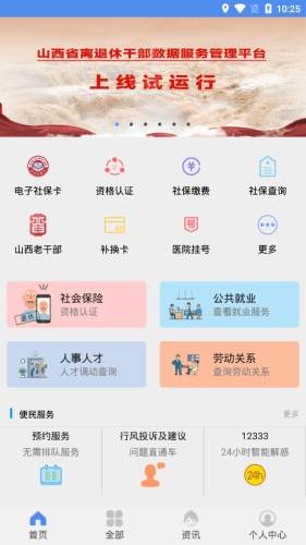 下载后首页即可点击“山西老干部”平台,社保养老、健康医疗、政策解读、养生保健等小栏目便可一览无余。