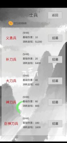小兵三国传是个水墨风格的文字手游,你可以招募各个谋臣将领,帮助你运筹帷幄,还能决战疆场,不断招募士兵,组合强大阵容,完成统一大业。