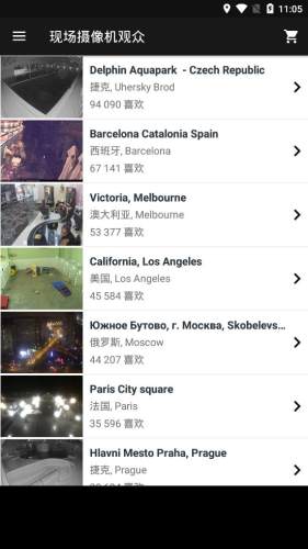 现场摄像机观众app,一款共享摄像头应用。可查看全球各个国家公共摄像区域直播视频,想看下北极的夜有多美,来这里就对了。