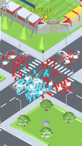 游戏里玩家控制角色在不同的城市中不断地展开冒险,玩家需要不断地收集散落的人,让他们加入你的帮派,操控你的帮派,去击败别人的帮派,需要玩家的眼疾手快,不然被强者欺压的可能就是你了,该猥琐的时候一定要猥琐,用脑子去击败敌人,游戏还有很多好看的皮肤可以解锁。