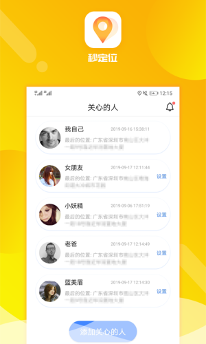 [实时共享] - 需安装秒定位后,邀请好友下载APP并授权登录即可获取实时位置。