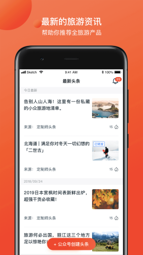 不再需要各个平台去寻找旅游咨询,在定制师头条app上可以随时随地看近期最火热的旅游资讯,随时保持行业敏感度。