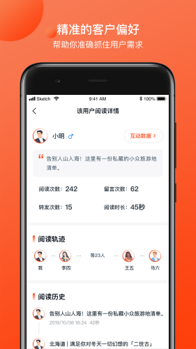 读者的轨迹查询,详细阅读习惯的记录。数据让可以更好的去了解客户偏好以及消费趋势,最直观的数据了解和分析客户消费选择。