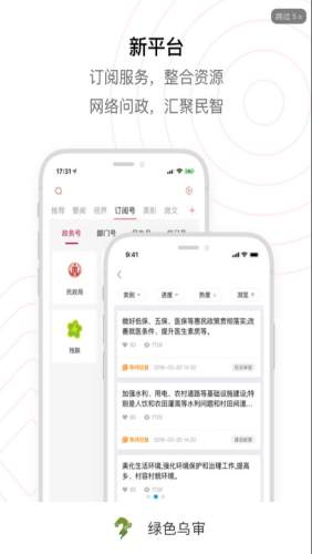 绿色乌审app是专为广大乌审旗人制作,软件拥有新闻资讯,移动政务、便民服务,在线互动等功能内容,可以帮助乌审旗人更轻松便捷生活。