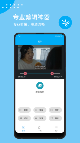 通过轻松导入相册视频和照片,使用剪切工具,你可以轻松地对视频进行剪切、裁剪,简单快速把照片制作视频或者对视频进行后期制作。