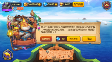 在前往终点的路上,有不同的航行路线供玩家选择。地图上有骷髅志的地方则会发生战斗事件,战胜劫船玩家获得高级贸易许可证,贸易许可证是运送高级货物的必需道具。圆点则会发生随机事件,会获得多种道具,也可能会损失货物;航行到分叉路口,根据自己的实力选择航海路线,相信自己实力可以选择海盗多的路线刷贸易许可证,想安逸走完剩下路程的可以选择海盗少的路线,由你主宰自己的命运。