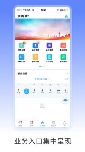多角色移动信息门户,业务栏目自由定制,满足不同工作场景