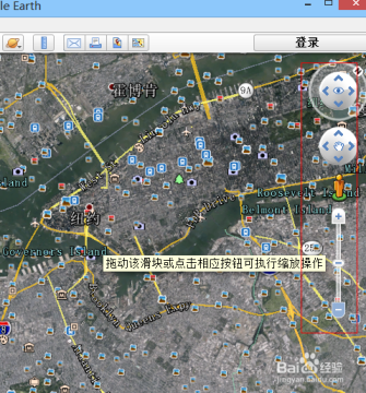 首先,在谷歌地球中找到你要看街景的城市,比如:纽约。此时你会发现,谷歌地球的右侧有一些透明的工具图标,你可以把鼠标移动到这些透明的工具图标上去