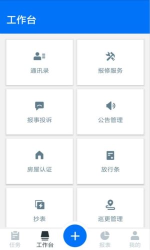 2、拥有便捷的工作台可以进行通讯录查找公告管理房屋认证等;