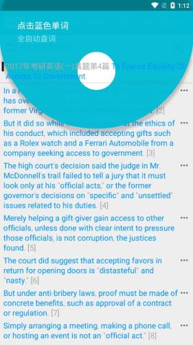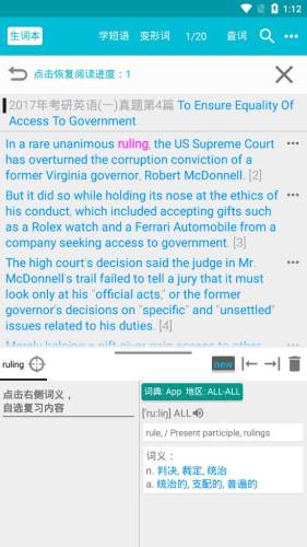 可以粘贴任意文章,包含数十种功能的阅读器,可以点击词义筛选考点、荧光笔、短语、派生词、积累写作素材,功能强大。