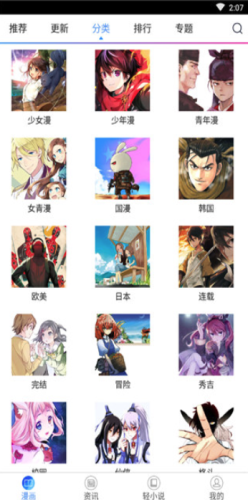 2、分类非常的齐全,各种类别分类有序,让用户可以非常方便的就能找到自己的想看的漫画