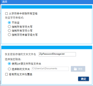 5、打开更多选项,用户可以自定义设置改变字符串格式、存储恢复密码存储的文本文件名等参数。